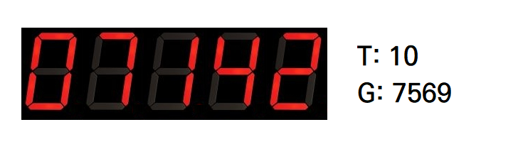 홍익이는 좁은 방에서 눈을 떴다. 주변을 살펴보니 벽면에는 LED로 된 다섯 자리 십진수 N이, 그 옆에 T, G라는 알파벳과 함께 또 다른 정수 두 개가 쓰여 있었고, 벽 앞에는 버튼 A, B 두 개가 있었다.