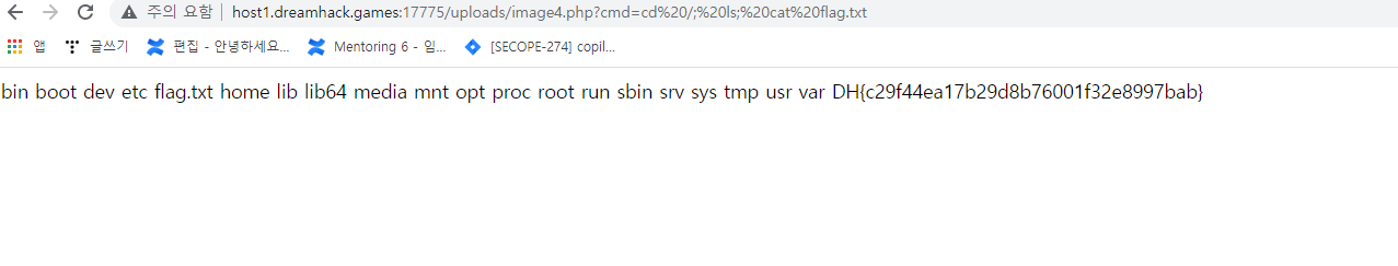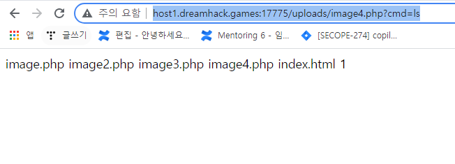 ls를 통해 탐색하니 파일명들이 모두 출력됨.