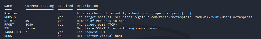 - rhosts => 대상 호스트 주소 , lhosts => 공격자 호스트 주소