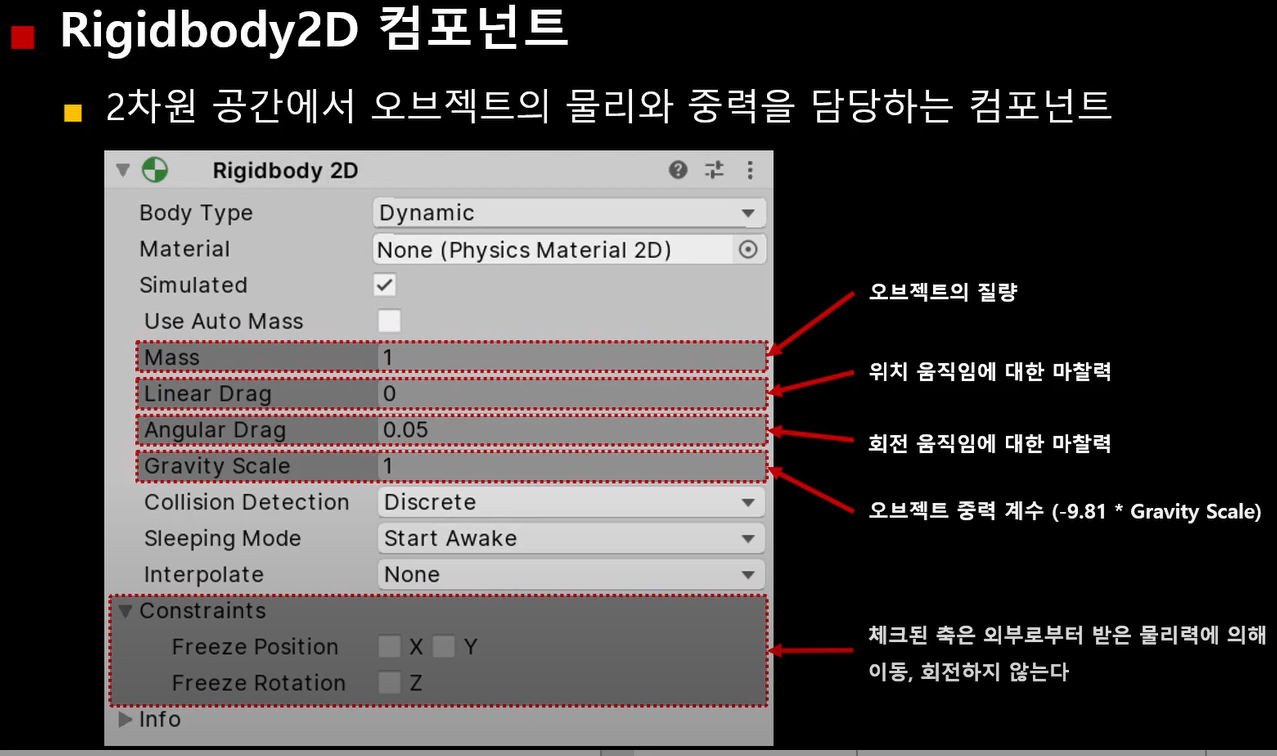 -> 오브젝트가 Rigid2D component를 가지고 있어야 함