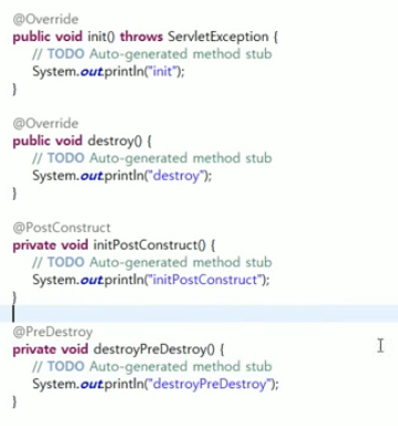 서버가 종료될 때 destroy() 첫 시작 init() 한번만 호출