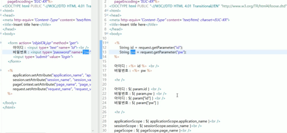 표현식 또는 액션 태그를 대신해서 값을 표현 하는 언어