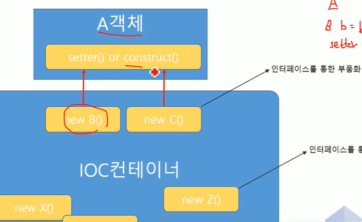 외부에서 new B()를 주입시키면 A의 b에 도킹됨.