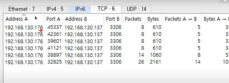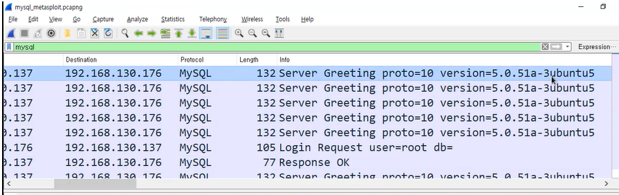 mysql로 필터하면 패킷이 나옴