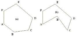 다각형의 임의의 두 꼭짓점을 연결하는 선분이 항상 다각형 내부에 존재하는 다각형을 볼록 다각형이라고 한다. 아래 그림에서 (a)는 볼록 다각형이며, (b)는 볼록 다각형이 아니다.
