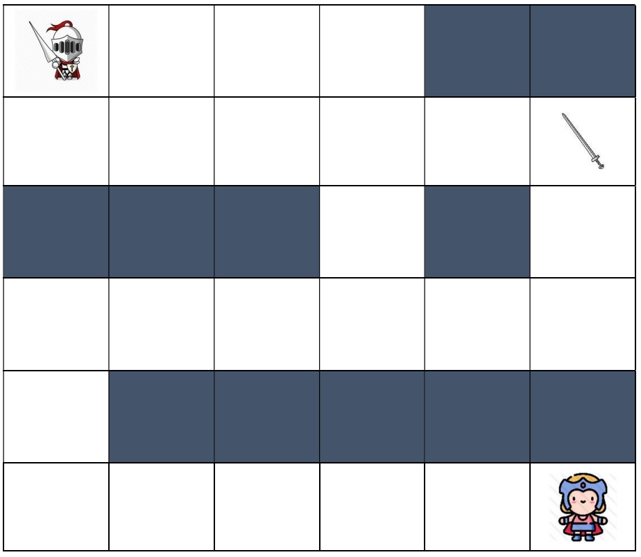 마왕은 용사를 괴롭히기 위해 공주에게 저주를 걸었다. 저주에 걸린 공주는 T시간 이내로 용사를 만나지 못한다면 영원히 돌로 변하게 된다. 공주님을 구출하고 프러포즈 하고 싶은 용사는 반드시 T시간 내에 공주님이 있는 곳에 도달해야 한다. 용사는 한 칸을 이동하는 데 한 시간이 걸린다. 공주님이 있는 곳에 정확히 T시간만에 도달한 경우에도 구출할 수 있다. 용사는 상하좌우로 이동할 수 있다.