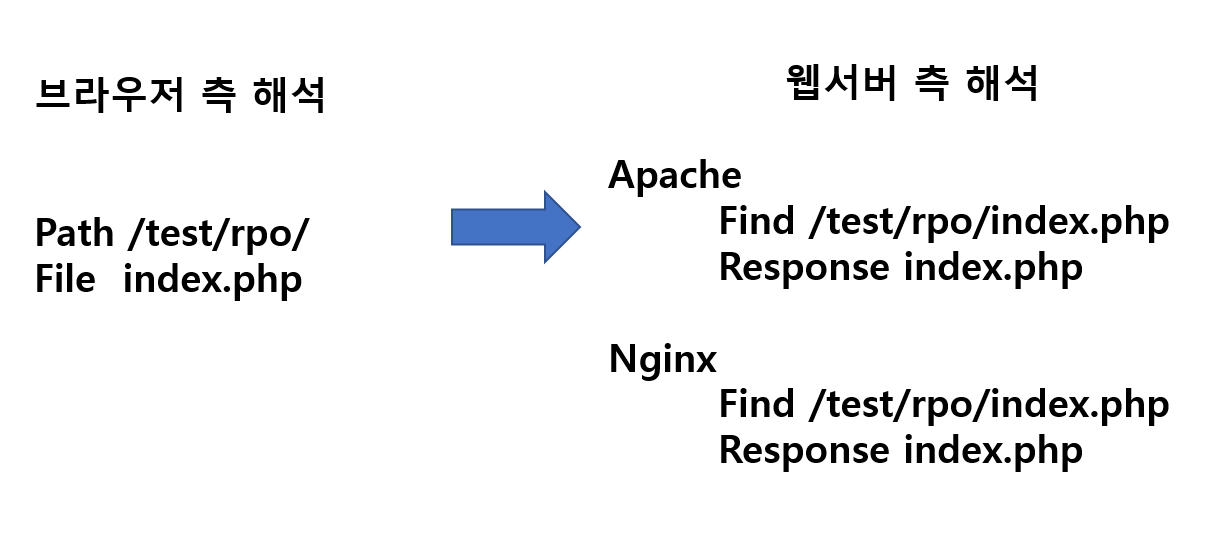 Apache또한 ..%2index.php를 찾지만 Nginx에서는 변환되어 정상 파일 응답함.